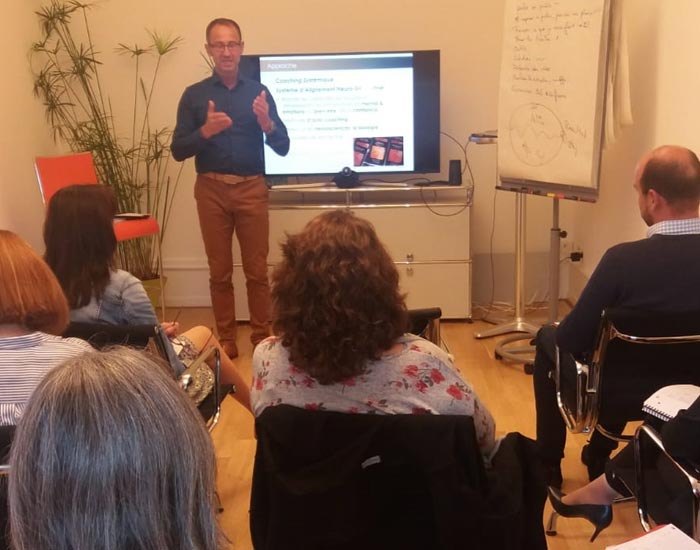 A 38 ans, mon poste de directeur en Banque Privée internationale part à Londres. Je décide de lancer mon entreprise de conseil en gestion de projets. J’entame alors le virage, en entamant de 2011 ma première formation de coaching. Celui-ci deviendra la clef de voûte de mes accompagnements. Puis en 2016, le coaching neuroémotionnel (SANE), basé également sur les neurosciences et la biologie, vient compléter la boîte à outils. Après l’animation de plusieurs séminaires grand publics SANE, je deviens